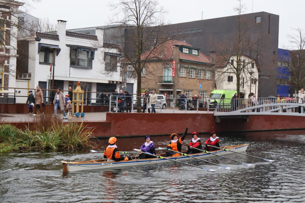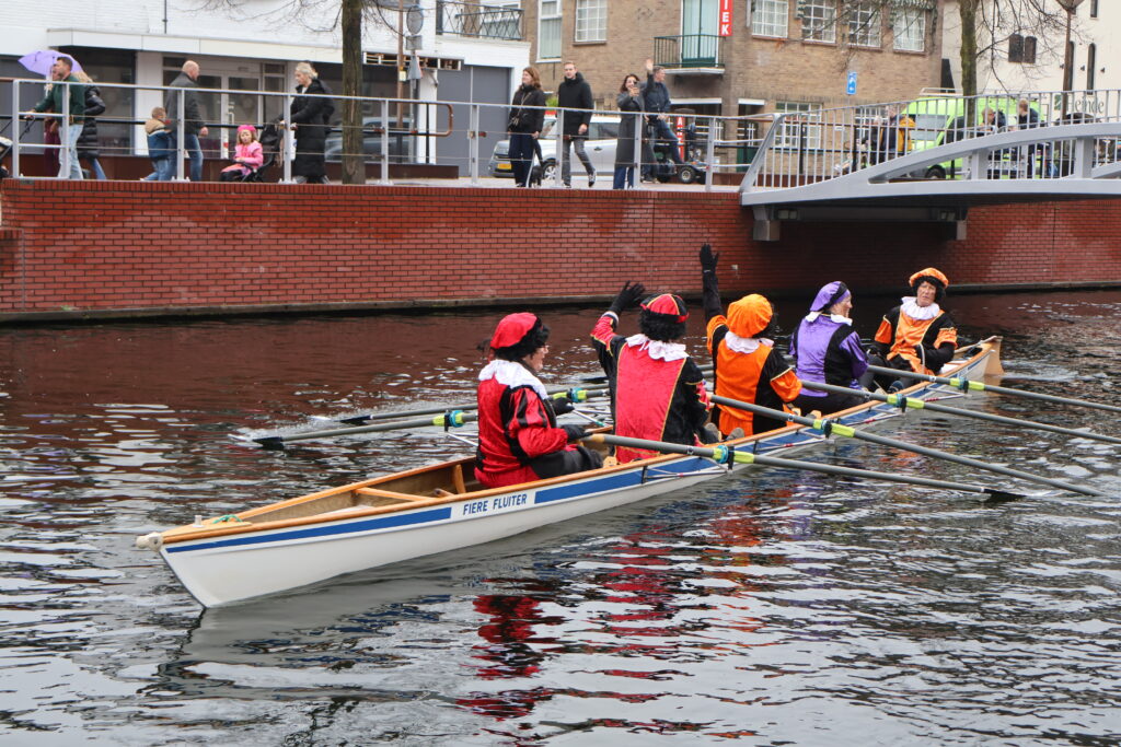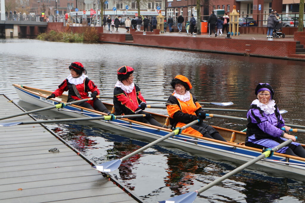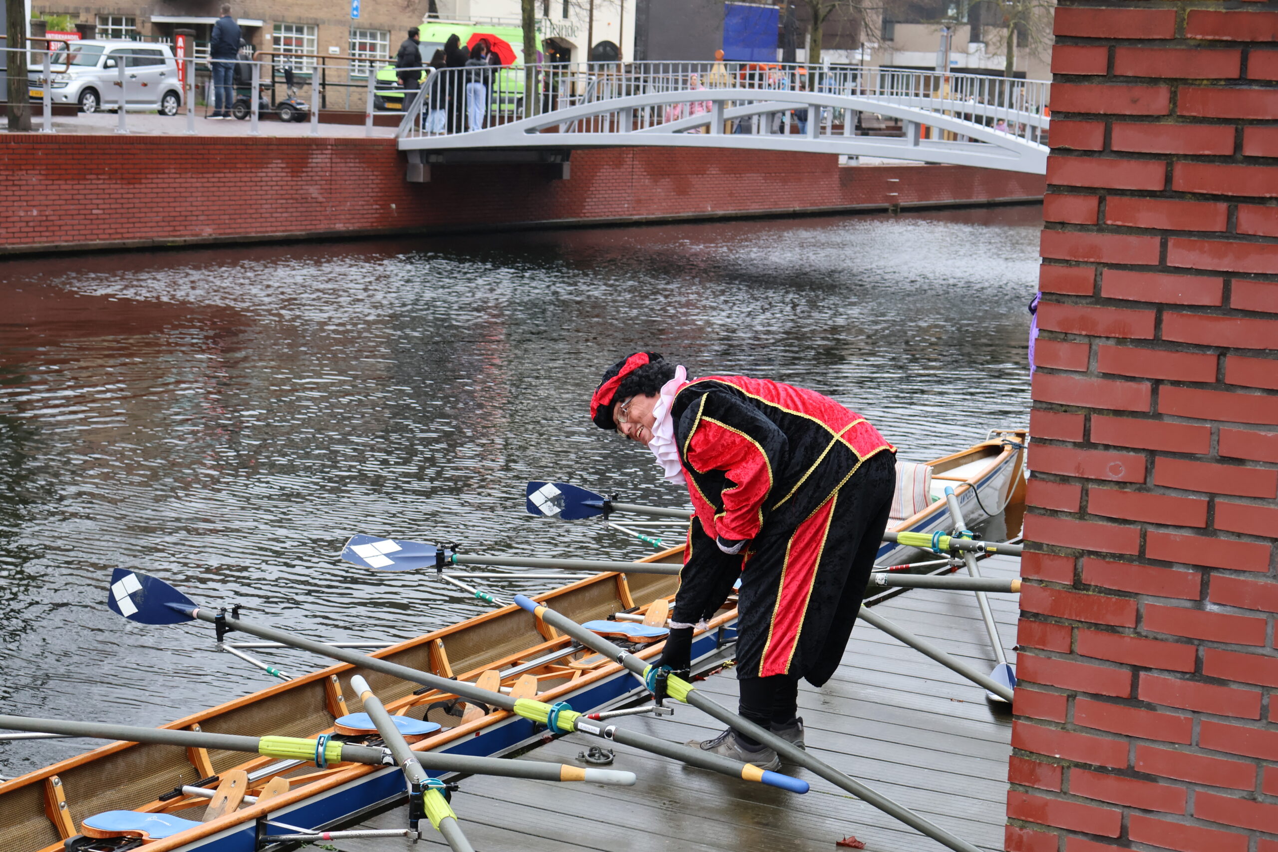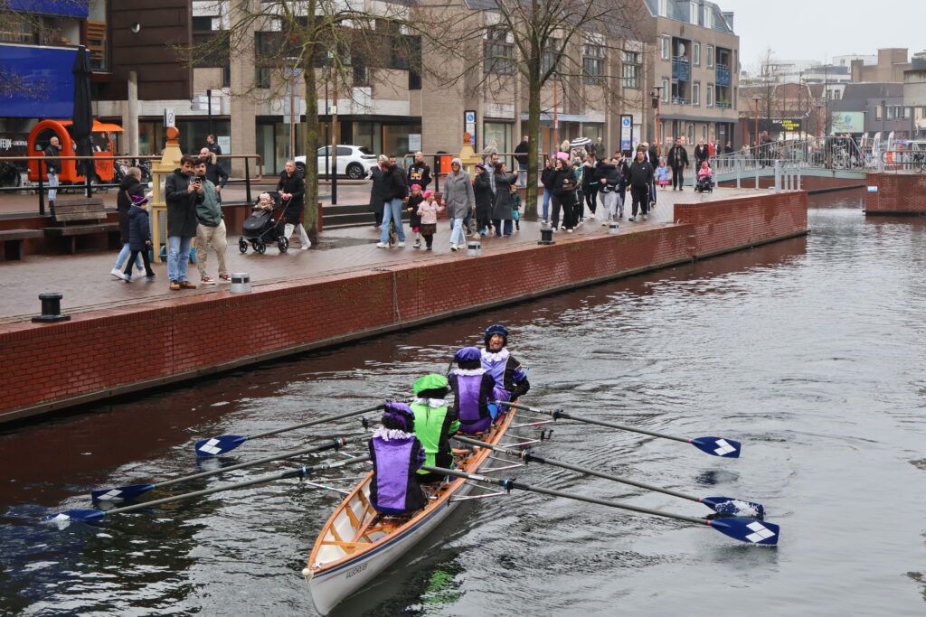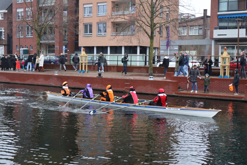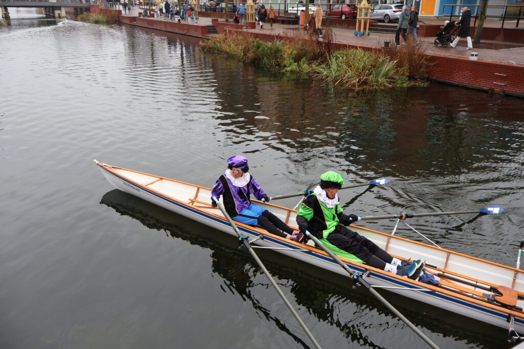 De pieten deelden rijkelijk pepernoten uit en poseerden lachend voor talloze foto’s met de kinderen. Tegen half twee was het strooigoed op en na nog een laatste fotosessie stapten de roei-pieten weer in hun boten.