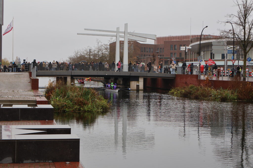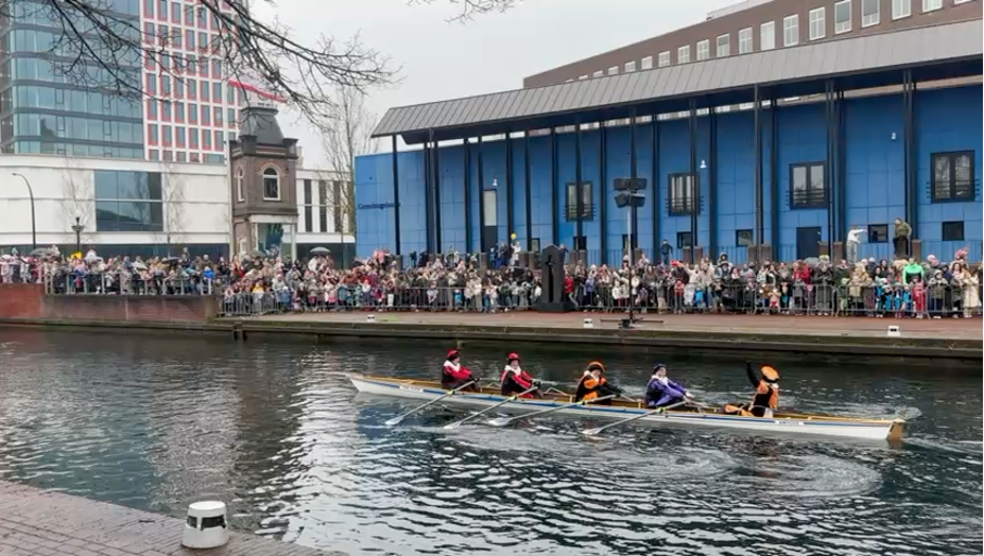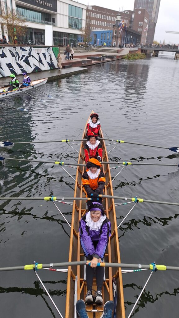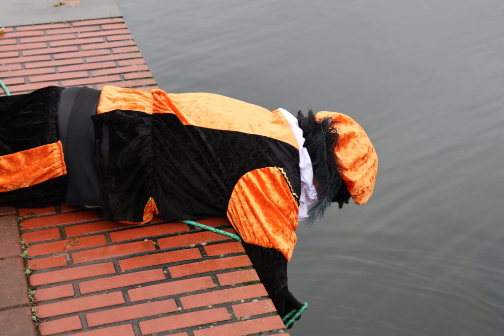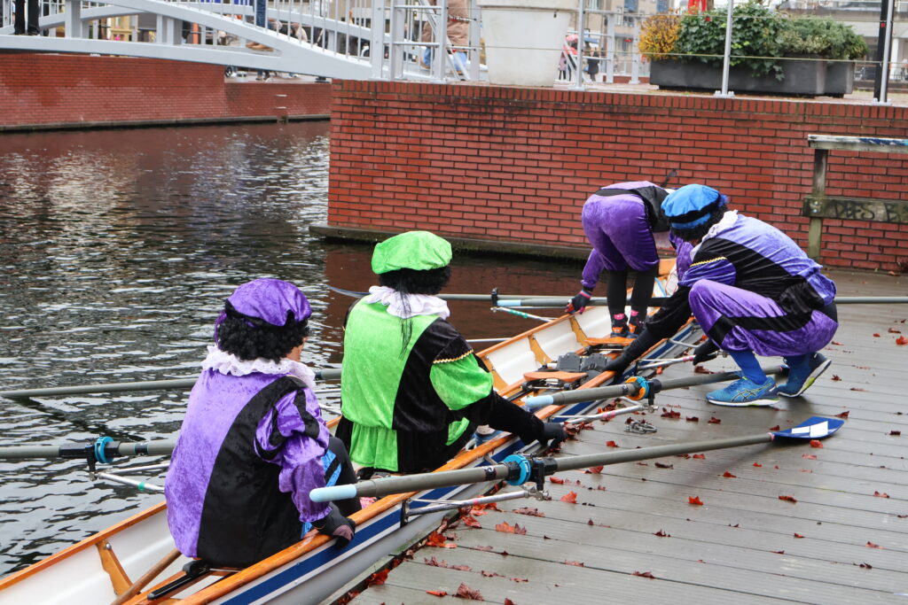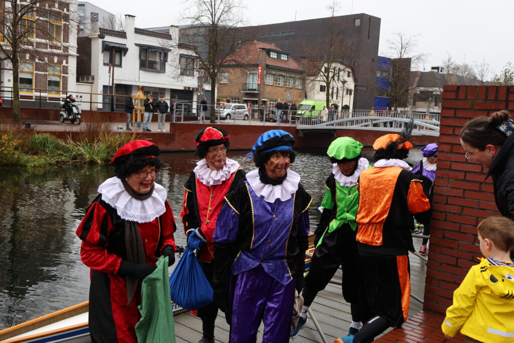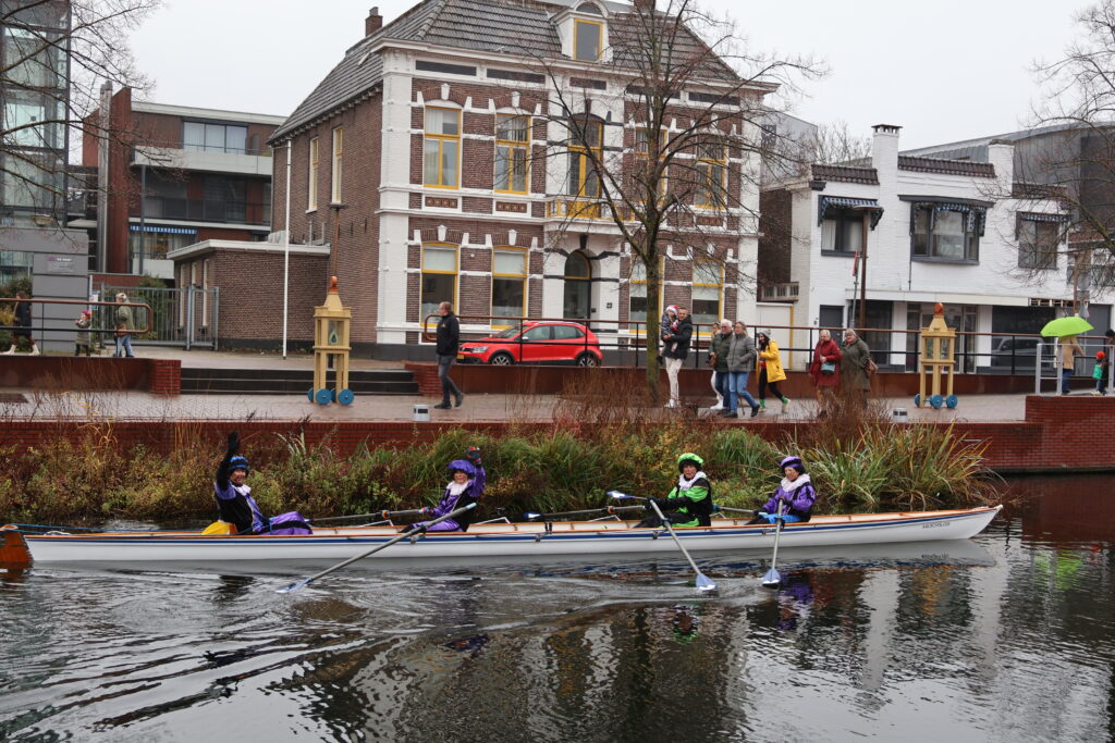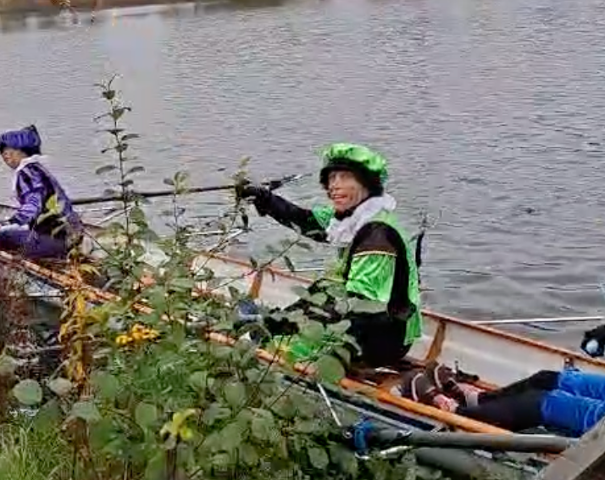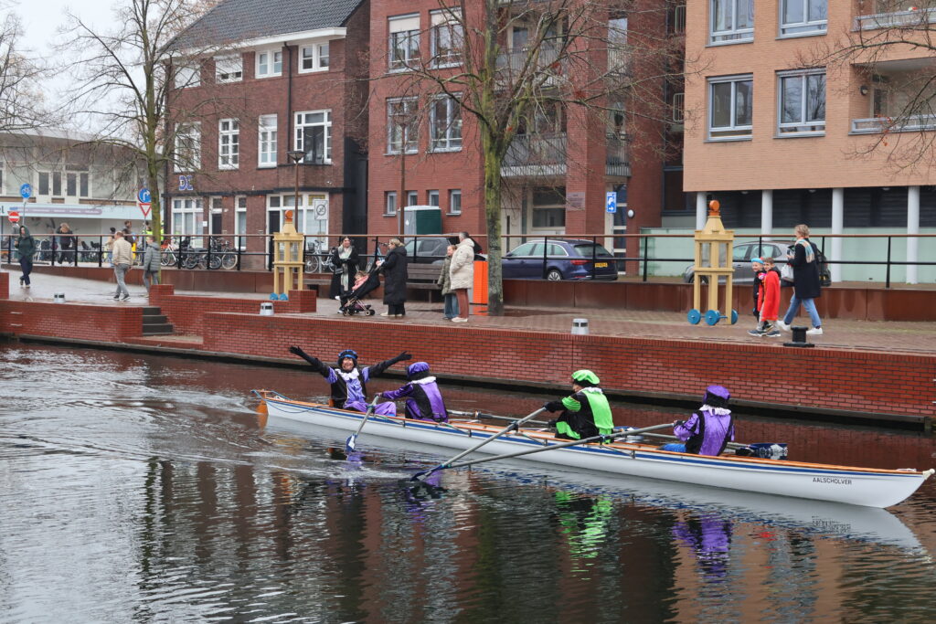 De pieten deelden rijkelijk pepernoten uit en poseerden lachend voor talloze foto’s met de kinderen. Tegen half twee was het strooigoed op en na nog een laatste fotosessie stapten de roei-pieten weer in hun boten.