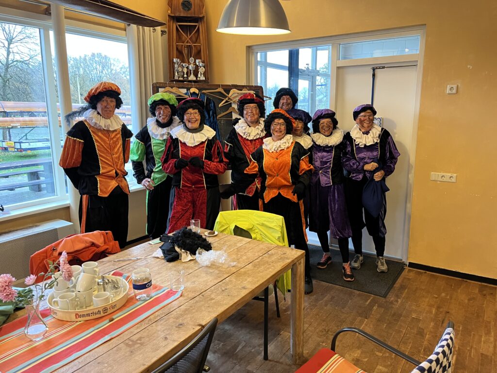 Dankzij het rustige weer en de uitgelaten sfeer verliep de terugtocht voorspoedig. Rond twee uur waren beide pieten boten weer terug bij Amycus. Kort na aankomst werd het feest nog even vastgelegd door een verslaggever van De Roei, die foto’s maakte en de belevenissen noteerde. Na het schoonmaken van de boten werd er nog gezellig nagepraat onder het genot van een kopje koffie en thee, waarna iedereen tevreden en voldaan huiswaarts keerde. Mede dankzij het droge weer was het opnieuw een enerverende en onvergetelijke pieten dag vol blije gezichten!