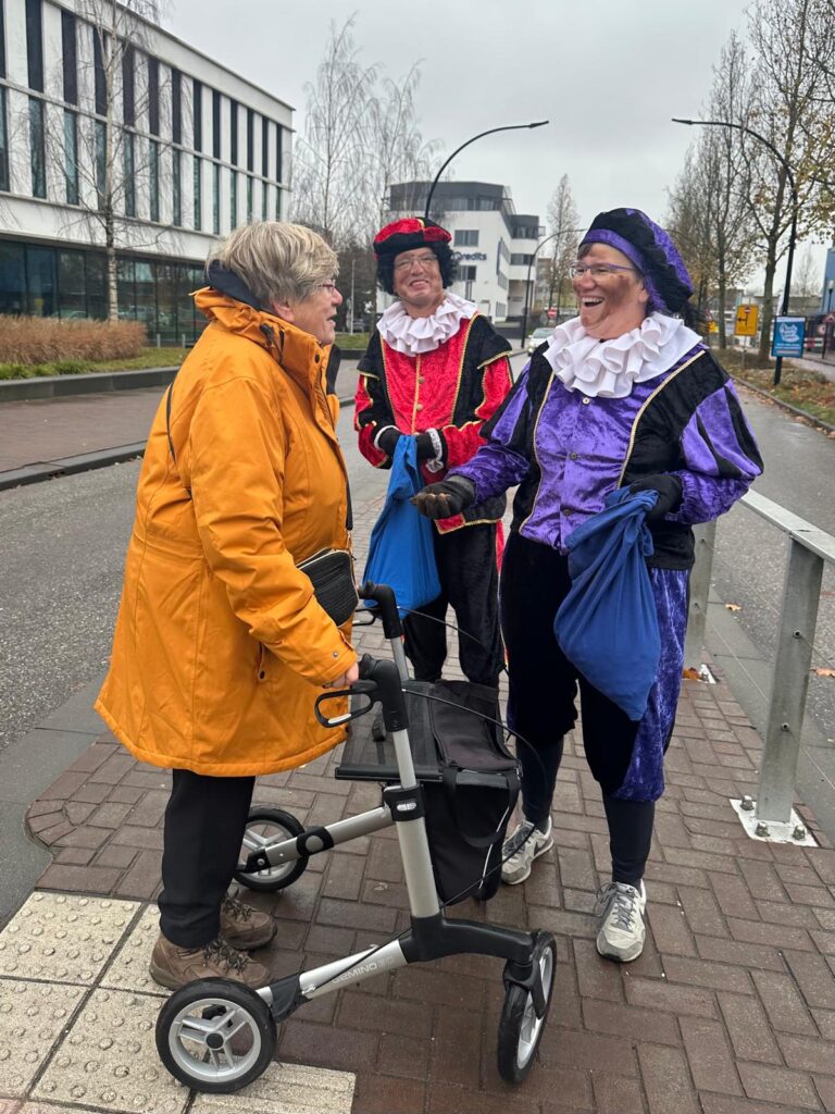 Voor sommigen zat er zelfs een handje pepernoten in de jaszak, uitgedeeld door de goedgemutste pieten. Onderweg werd piet André even voor opa aangezien. Piet moest hartelijk lachen om de vergissing en deelde vrolijk pepernoten uit.