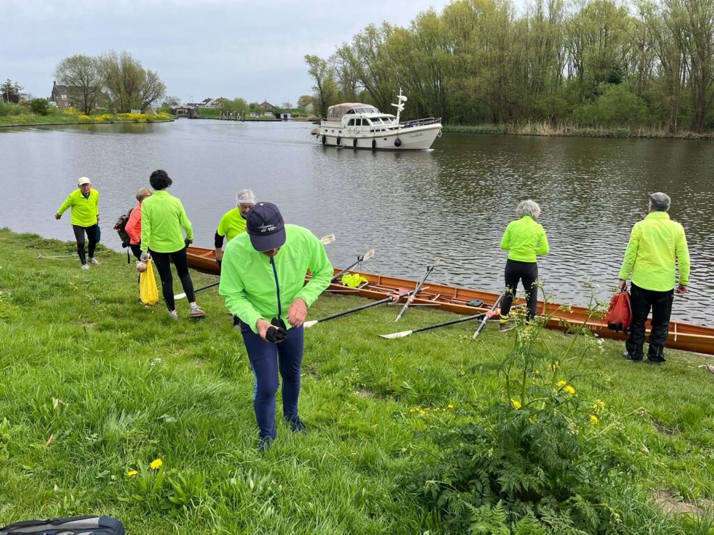 Nadat we onze vochthuishouding hadden gecorrigeerd ging het weer verder, nu naar de RV Leerdam. Daar gingen de boten weer het water uit, ze werden schoongemaakt en vervolgens voorzichtig opgeborgen in de roeiloods.