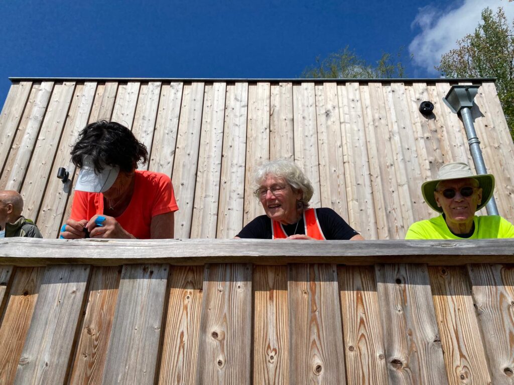 Toen we het stadje Heukelum naderden konden we aan bakboord het kasteel zien. Dit ligt precies op de grens tussen de provincies Gelderland en Zuid-Holland. Naast de kerk in Heukelum zagen we tussen de huizen door een ooievaarsnest met ooievaar en een jong. Vervolgens roeiden we verder tussen de groene oevers met aan beide kanten rietlanden en griendlanden. Het viel ons op hoeveel plassen en drassige gebieden er links en rechts waren. En daardoor ook veel watervogels. Er stonden heel wat knotwilgen die voor een groot deel geknot waren.