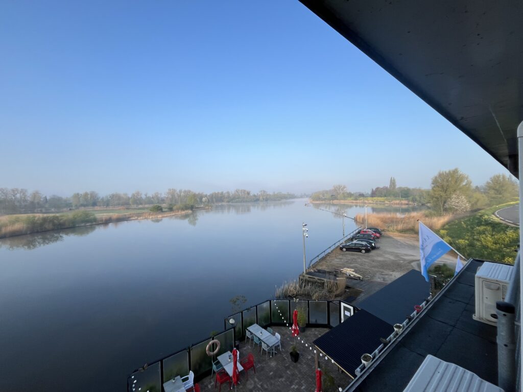 Het liep allemaal naar wens en alles viel op zijn plaats: prachtig weer, een leuk hotel gelegen aan de Linge met een schitterend uitzicht, prima roeiboten, mooi rustig roeiwater door landelijk gebied. En last but not least: uitermatig prettige roeigenoten.