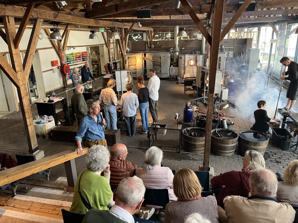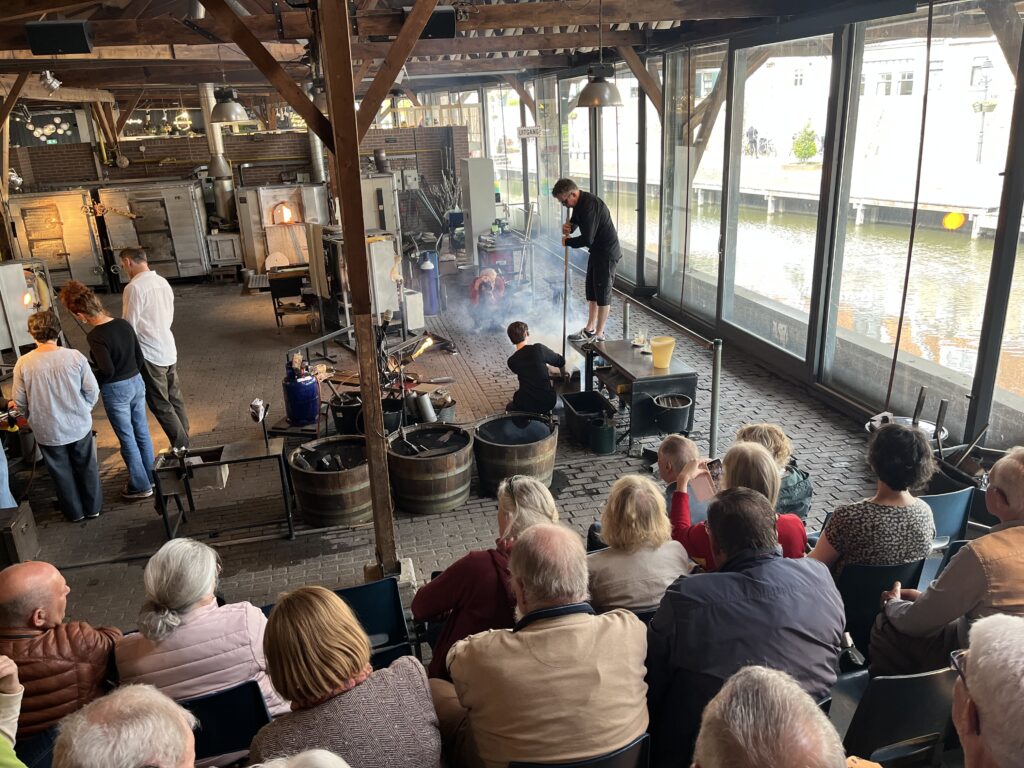 Woensdag 15 april was de laatste dag. Enkelen gingen na het ontbijt direct naar huis en de anderen bezochten het Glasmuseum in Leerdam. Het museum zelf ligt schuin tegenover het gebouw van de RV Leerdam. Er waren heel veel mooie ontwerpen te zien, vooral van Bert Frijns en van de gebroeders Guido en Antonio Bon. Na een kopje koffie met koek vertrokken we naar de glasblazerij, 2 km verderop. Hier konden we zien hoe op ambachtelijke wijze glasobjecten werden gemaakt. Terwijl de glasblazer bezig was, werd door een voorlichtster verteld wat er gebeurde. Ook heel interessant. In hetzelfde gebouw konden we lunchen en daarna stapten we in de auto richting Almelo.
